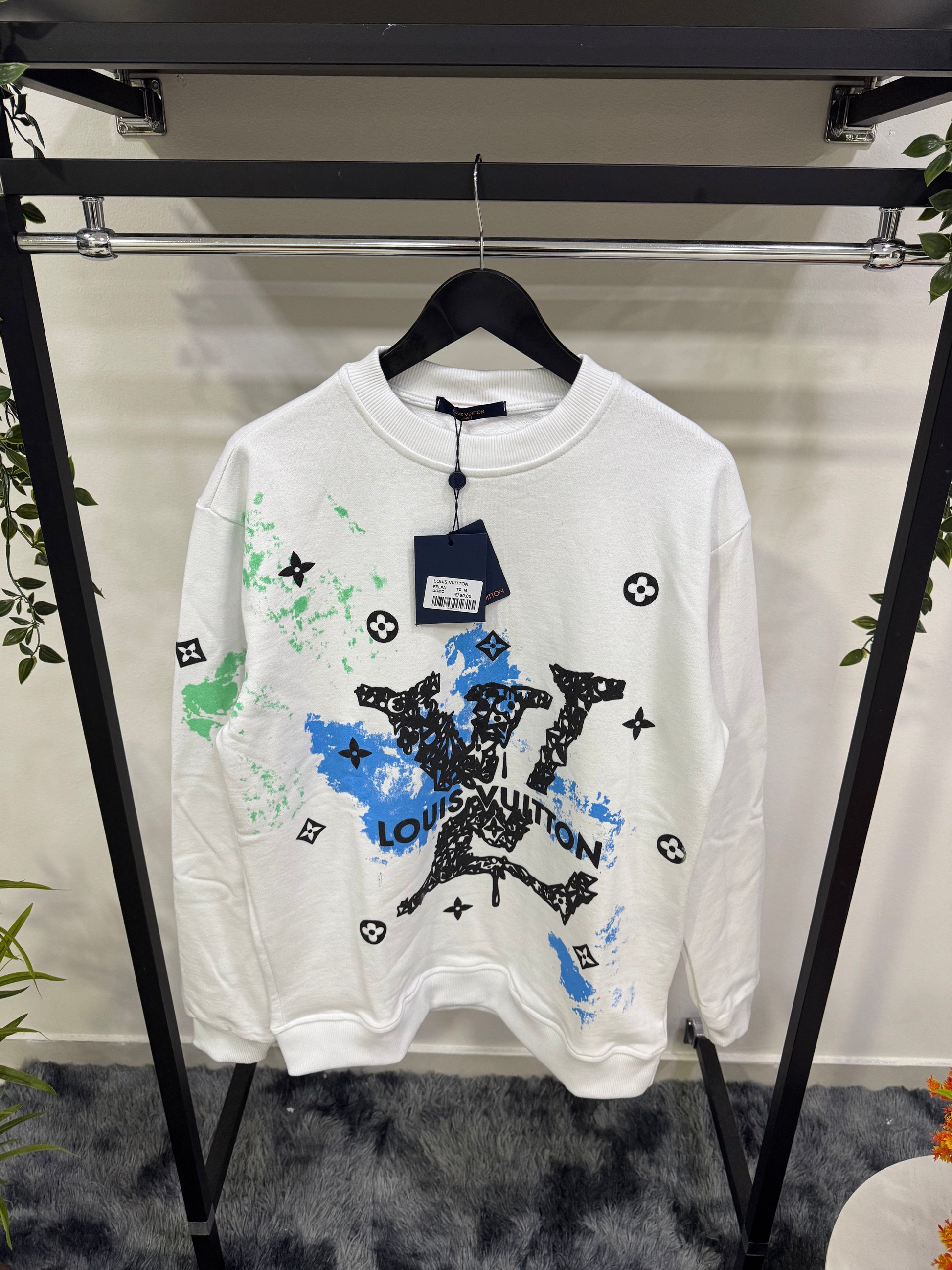Questa felpa girocollo LV presenta una stampa astratta di grande impatto sulla parte frontale, combinando design contemporaneo e comfort. Realizzata con materiali di alta qualità, assicura una vestibilità confortevole e una lunga durata, ideale per chi cerca uno stile moderno senza rinunciare alla praticità quotidiana. Perfetta per valorizzare un outfit casual con un tocco distintivo e raffinato.