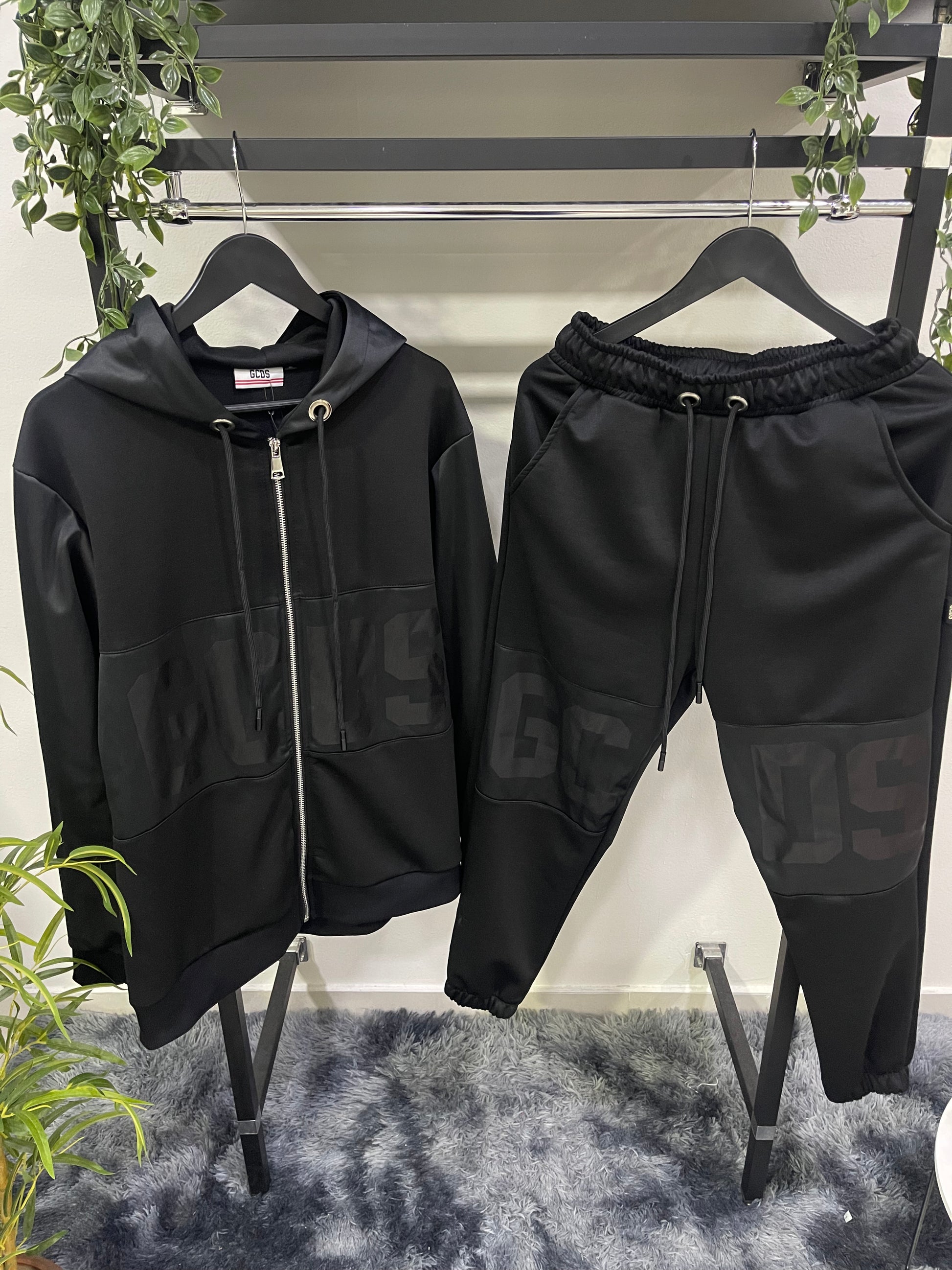 Pantaloni in felpa con inserti in nylon tono su tono e fascia con logo GCDS applicata sul retro. Vita elasticizzata con coulisse regolabile e fondo gamba stretch. Tasche laterali e posteriori.