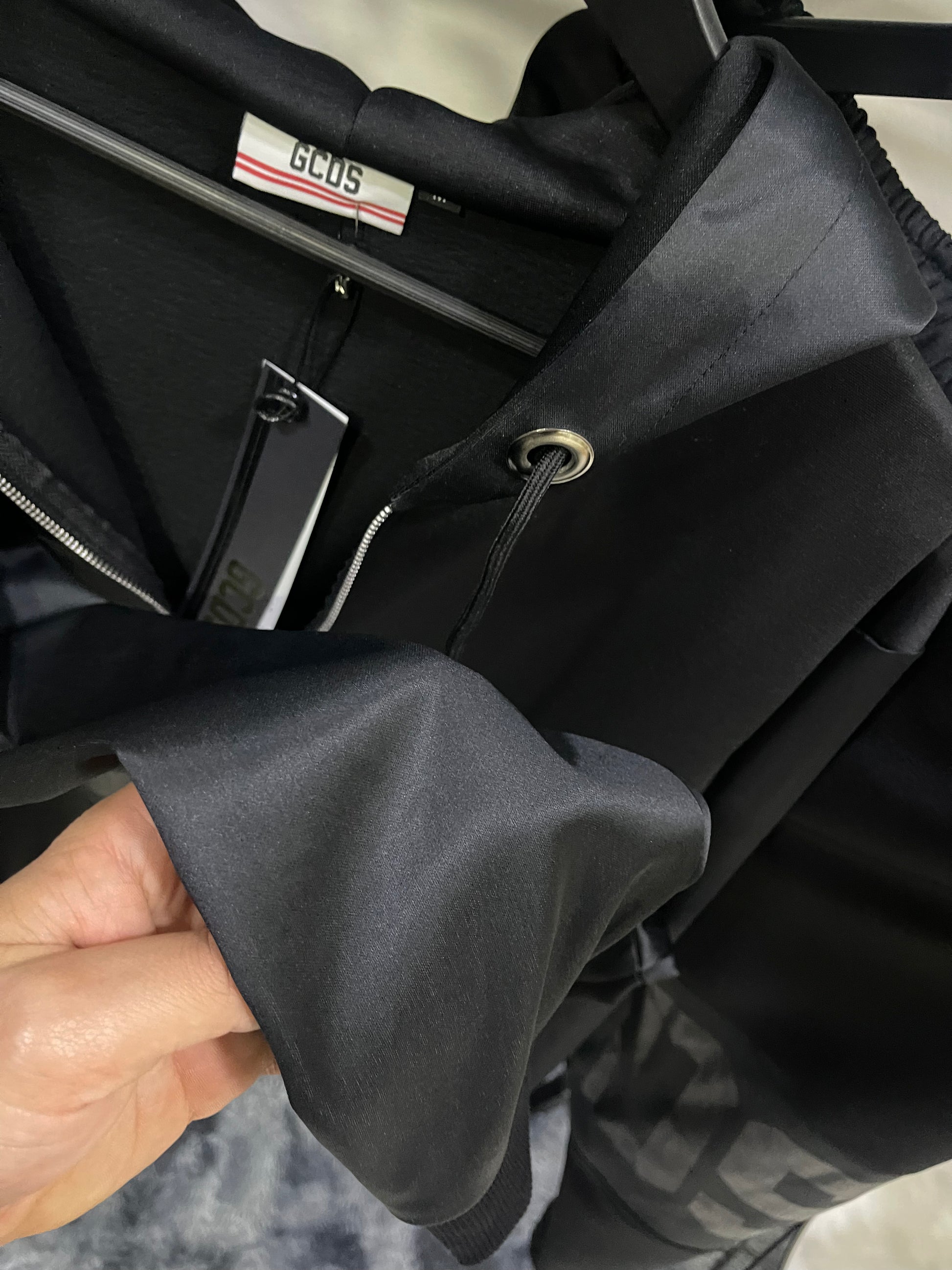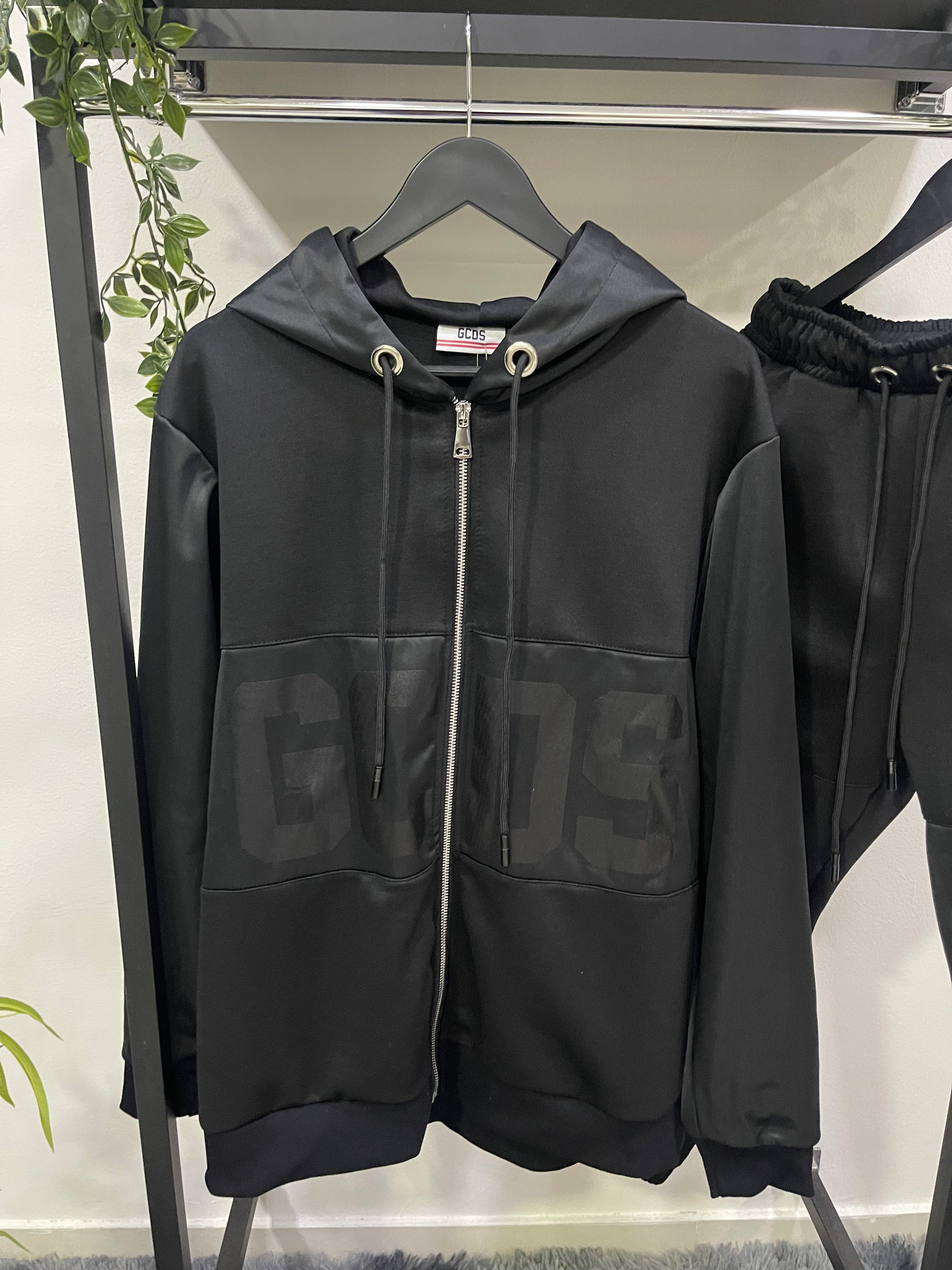 Felpa con zip integrale in nylon, con logo stampato in rilievo lucido tono su tono.